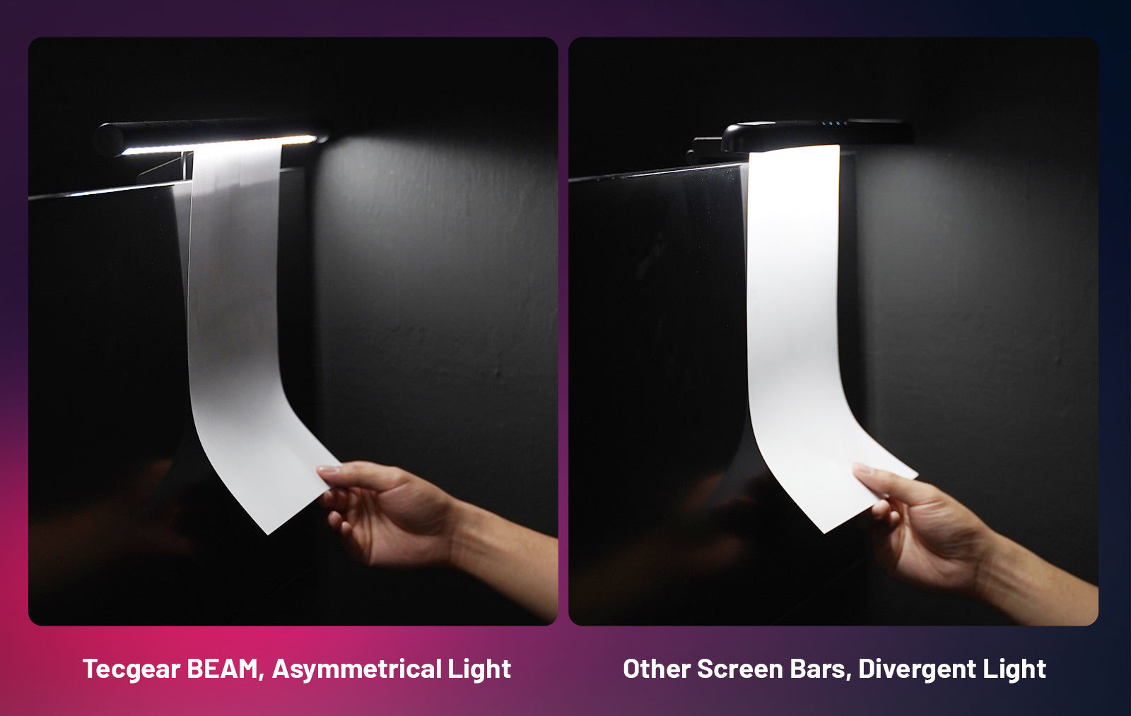 When compared to other screen bars, TECGEAR Beam unique asymmetrical lighting does not cause screen glare.