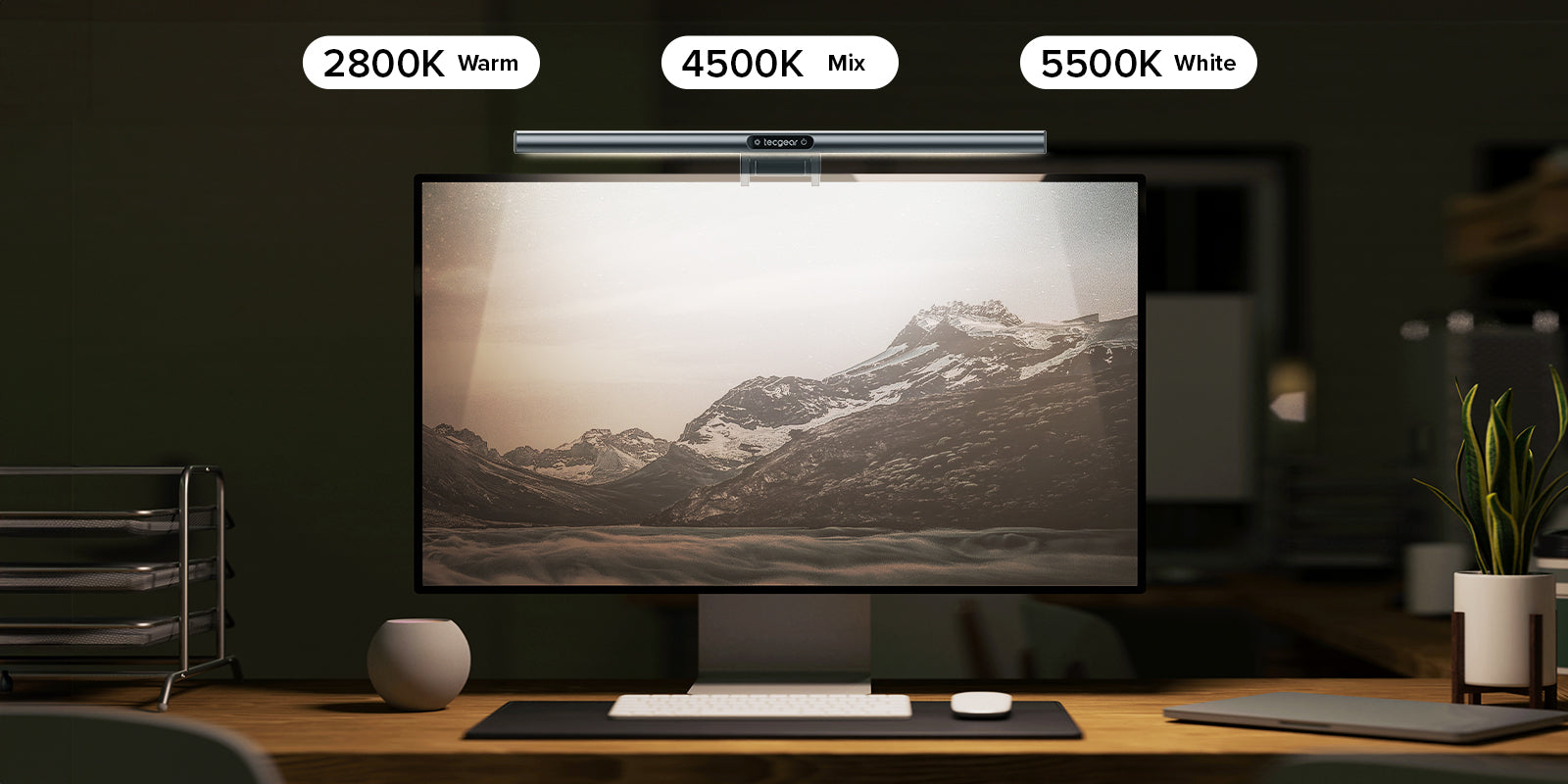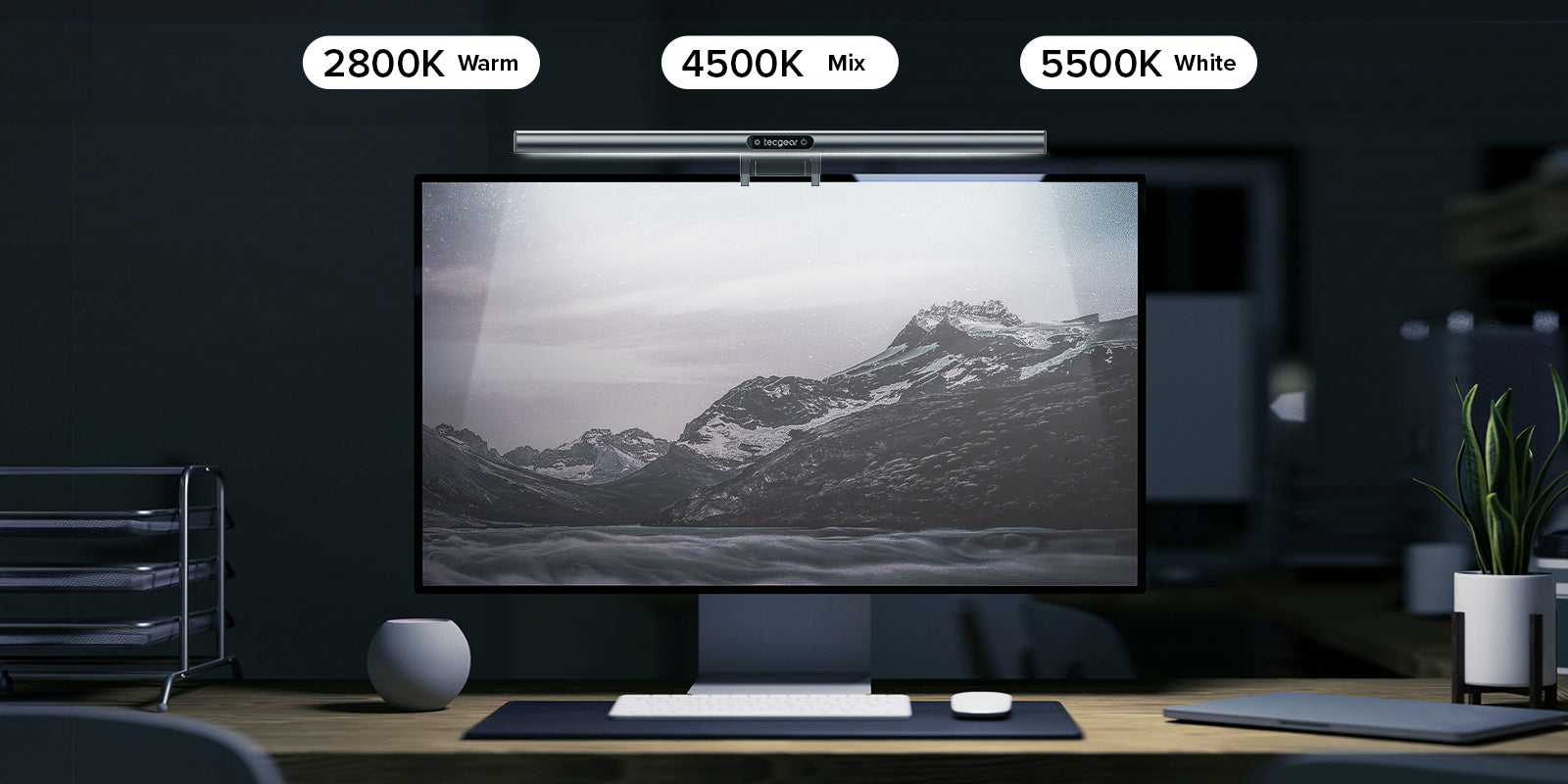 Monitor light bar with touch control for 3 adjustable light modes (2800K-5500K). Mount above your monitor and save desk space. Reduce eye strain when using the computer for extended periods of time.