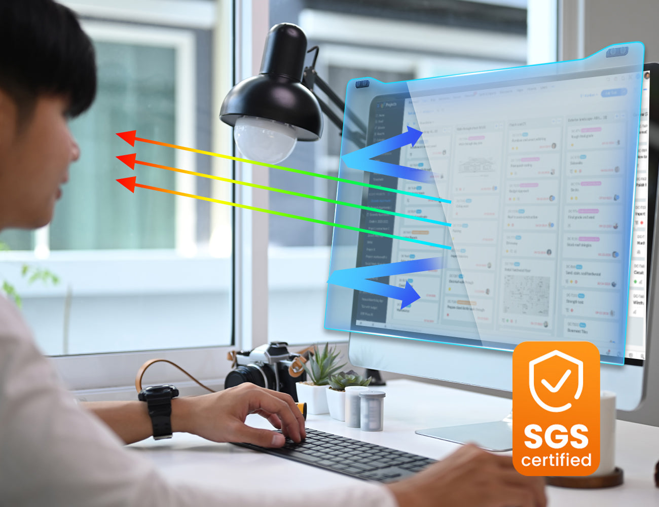 By filtering out blue light emitted from screens, you can reduce eye strain, digital eye fatigue from continuous exposure and improve your sleep quality. Best results certified by SGS.