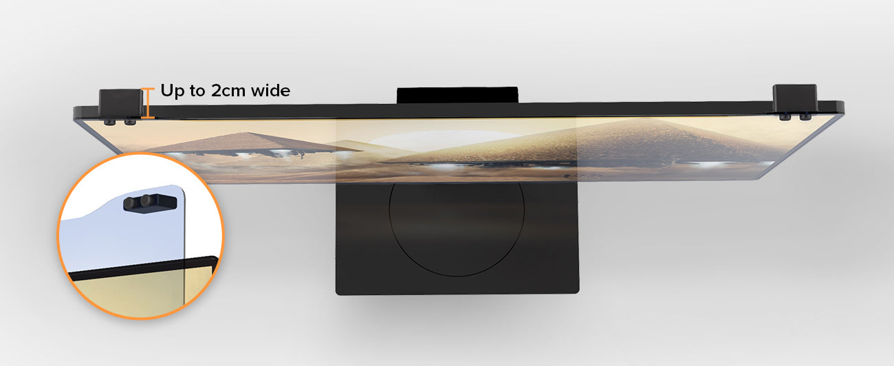 Rubber feet prevents sliding and is 2cm wide, to be compatible with a wide range of monitors.