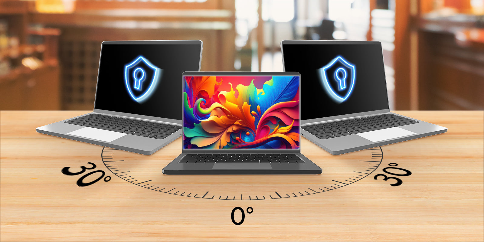 Limits screen visibility to a 60° front view, keeping the display hidden from side angles beyond 30° on either side to block unwanted glances and protect your information.