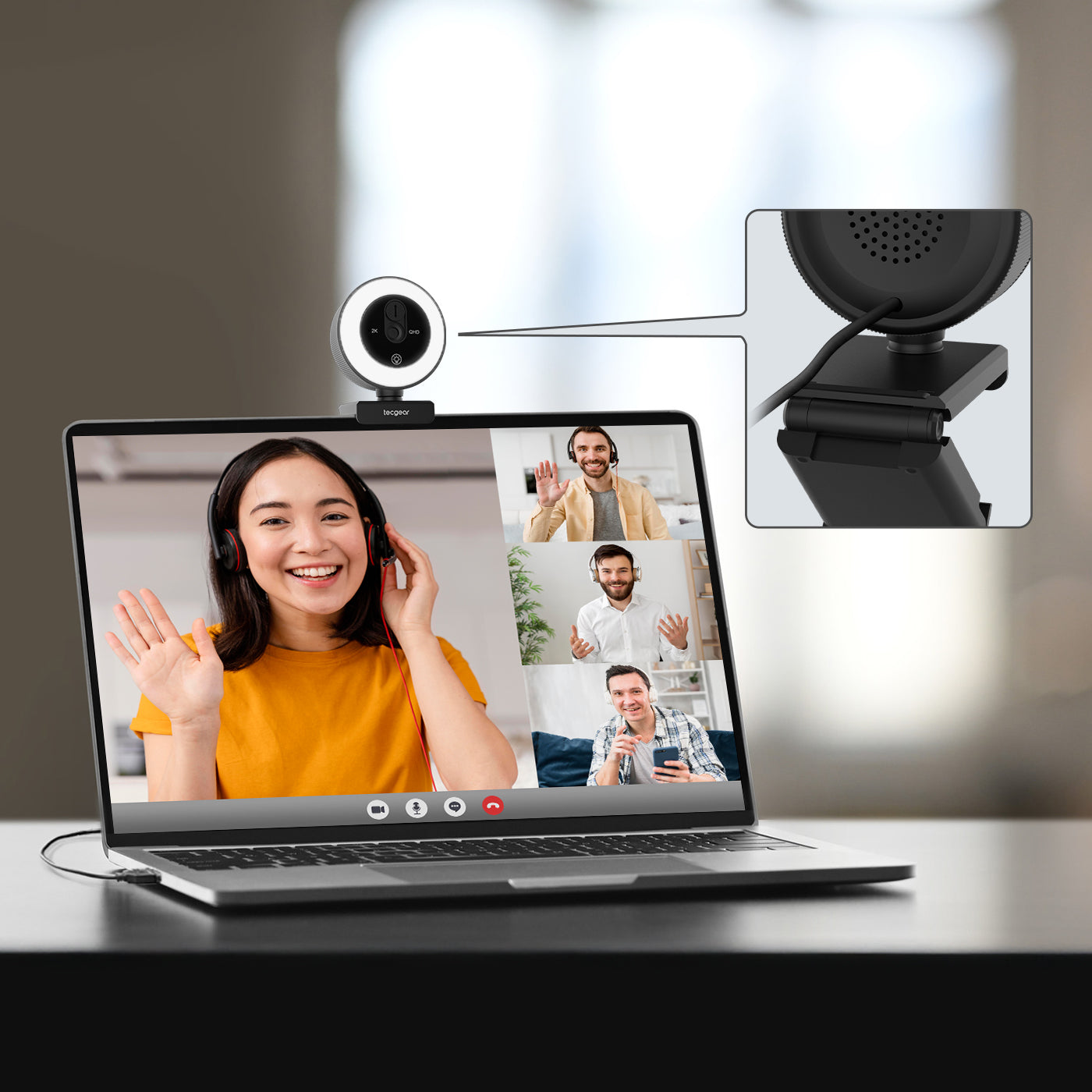 Look sharp and stay clear in every meeting with 2560×1440 Quad HD at 30fps.
