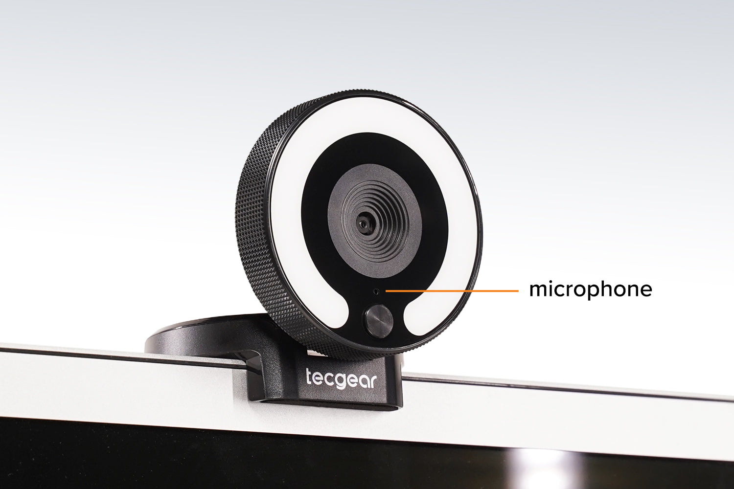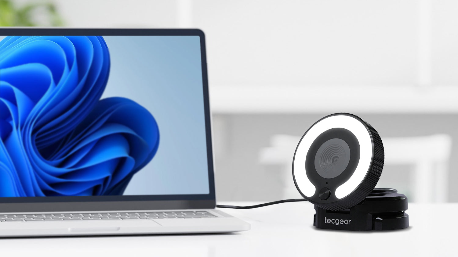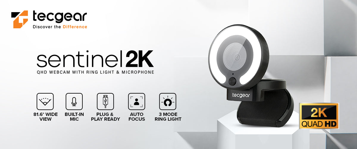 TECGEAR QHD Webcam with Ring Light, QHD 2560x1440px up to 30FPS, Auto Focus, Plug & Play, Built-in Microphone, Webcam for Live Streaming, Conferencing, Video Calling, Gaming.