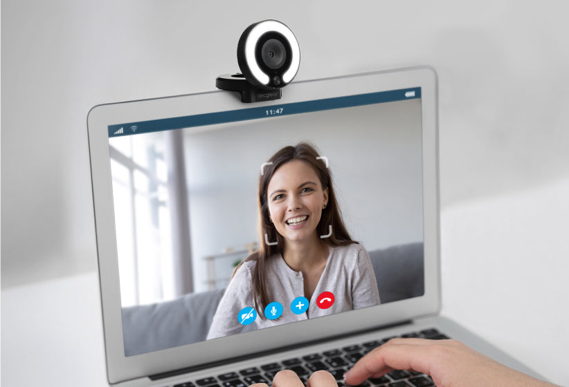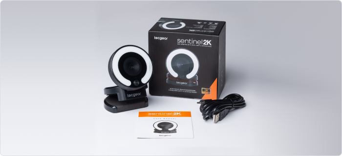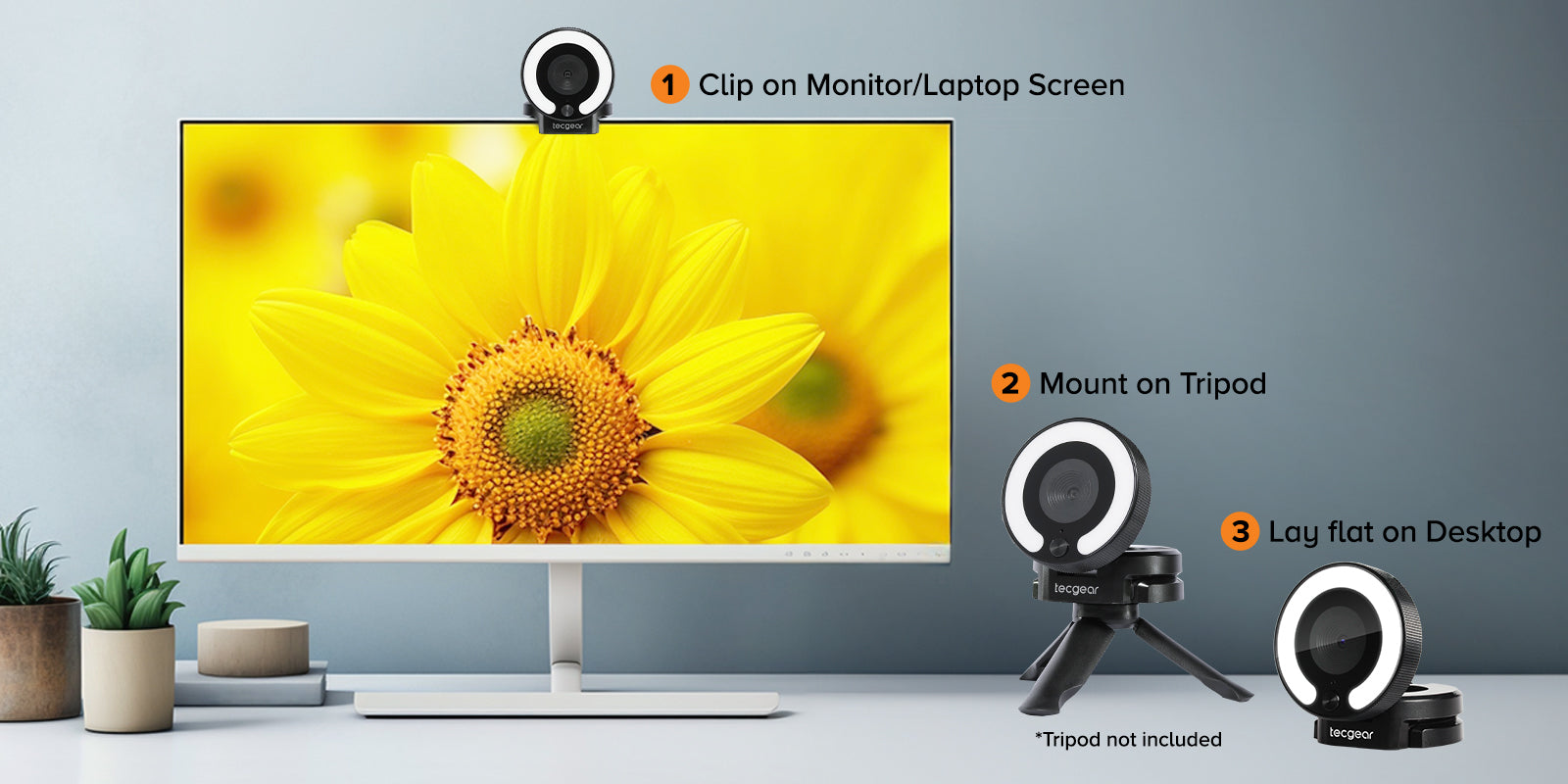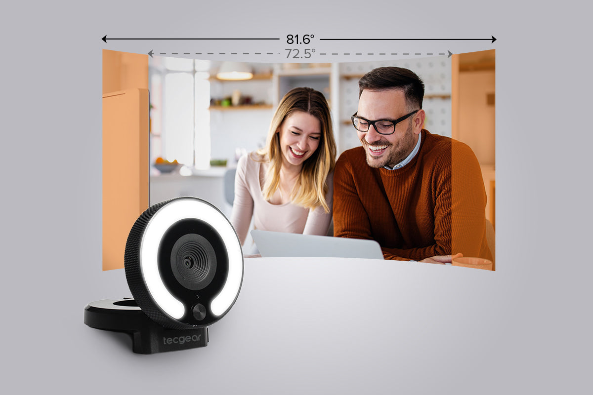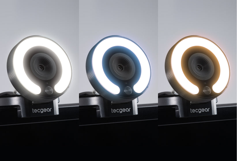 TECGEAR QHD Webcam with Ring Light, QHD 2560x1440px up to 30FPS, Auto Focus, Plug & Play, Built-in Microphone, Webcam for Live Streaming, Conferencing, Video Calling, Gaming.